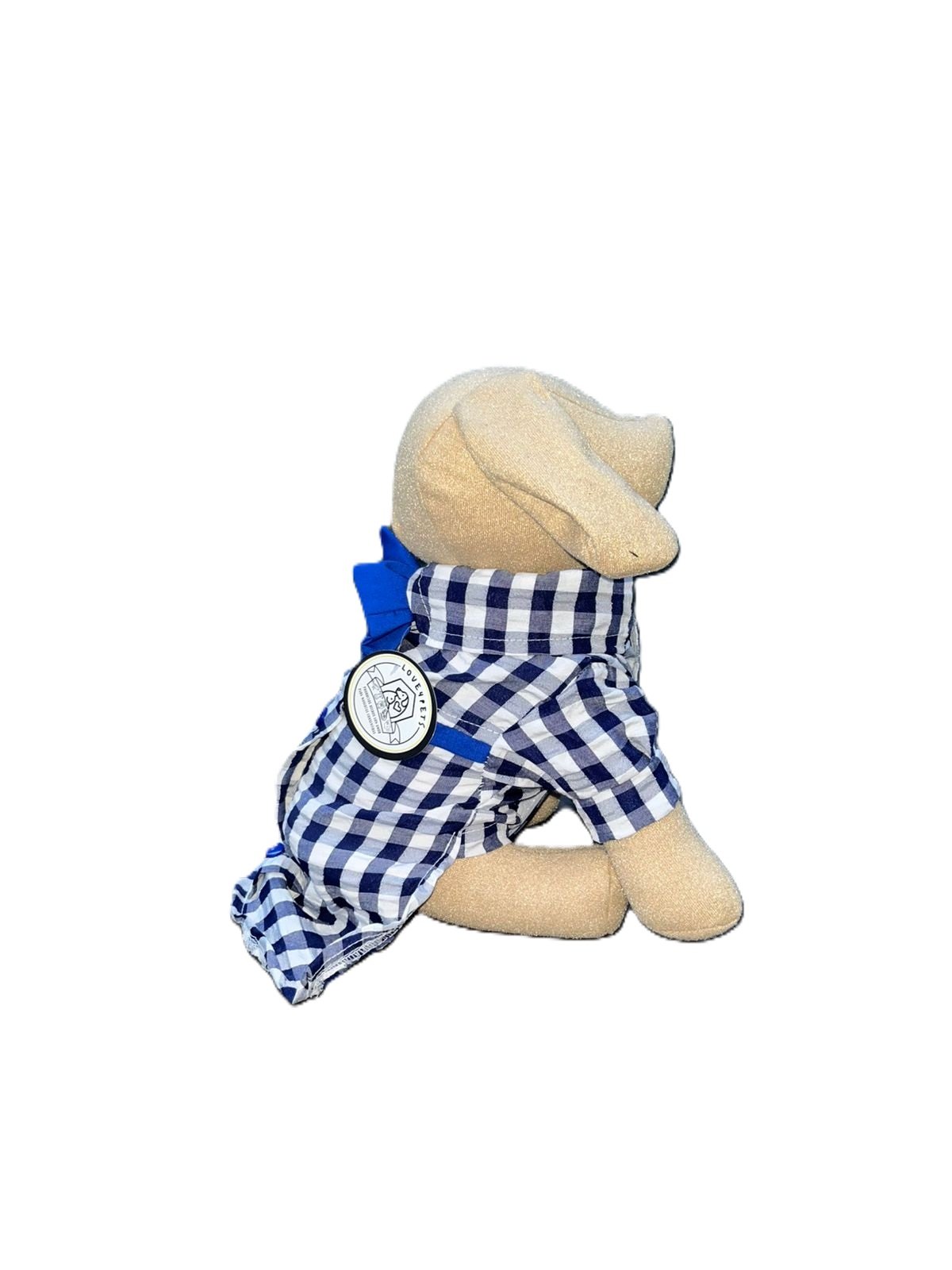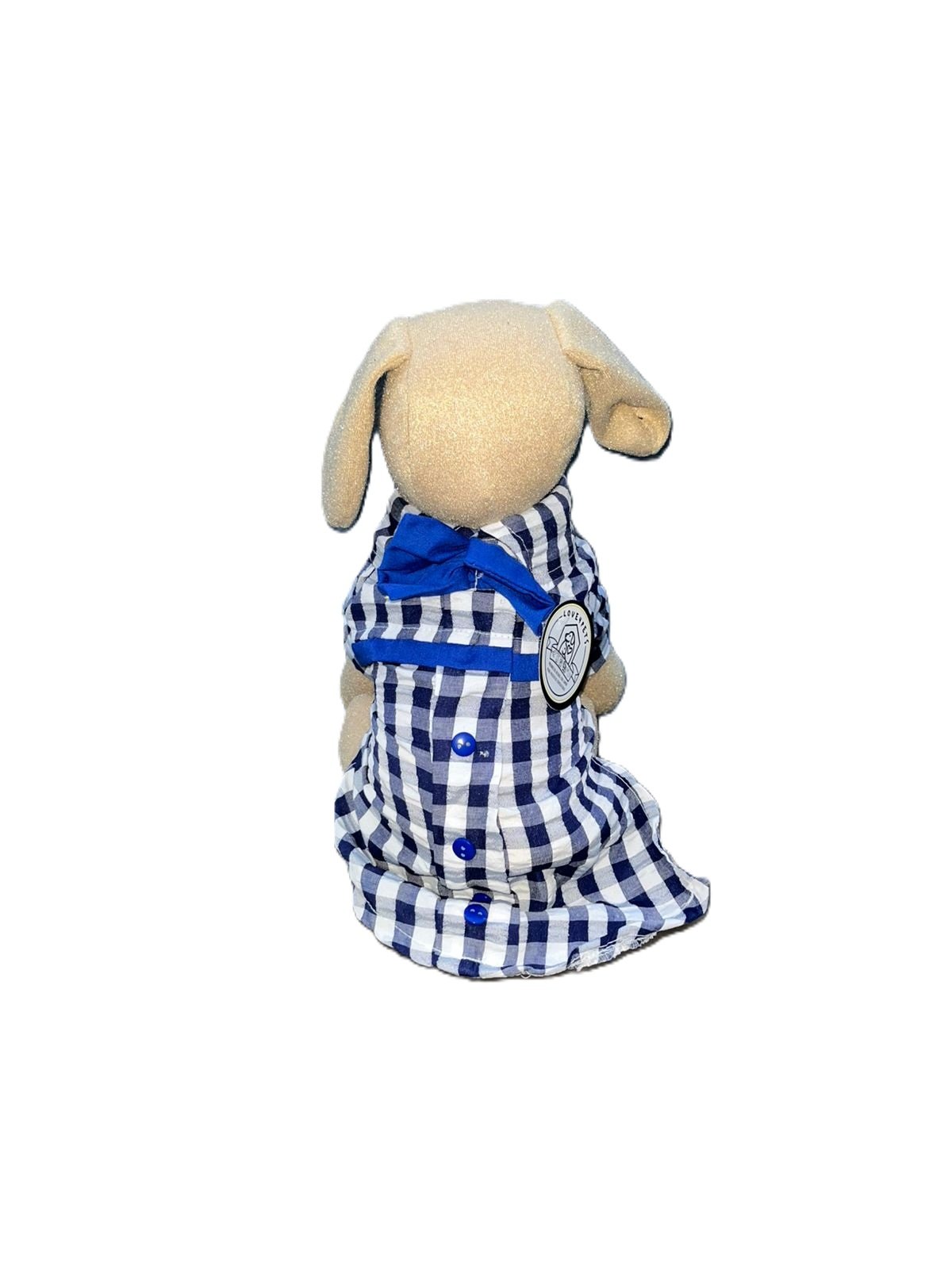 Haz que tu mascota luzca adorable y llena de estilo con esta blusa de algodón a cuadros azul marino y blancos con moño azul para mascota, una prenda perfecta que combina elegancia, comodidad y un toque femenino ideal para cualquier ocasión.