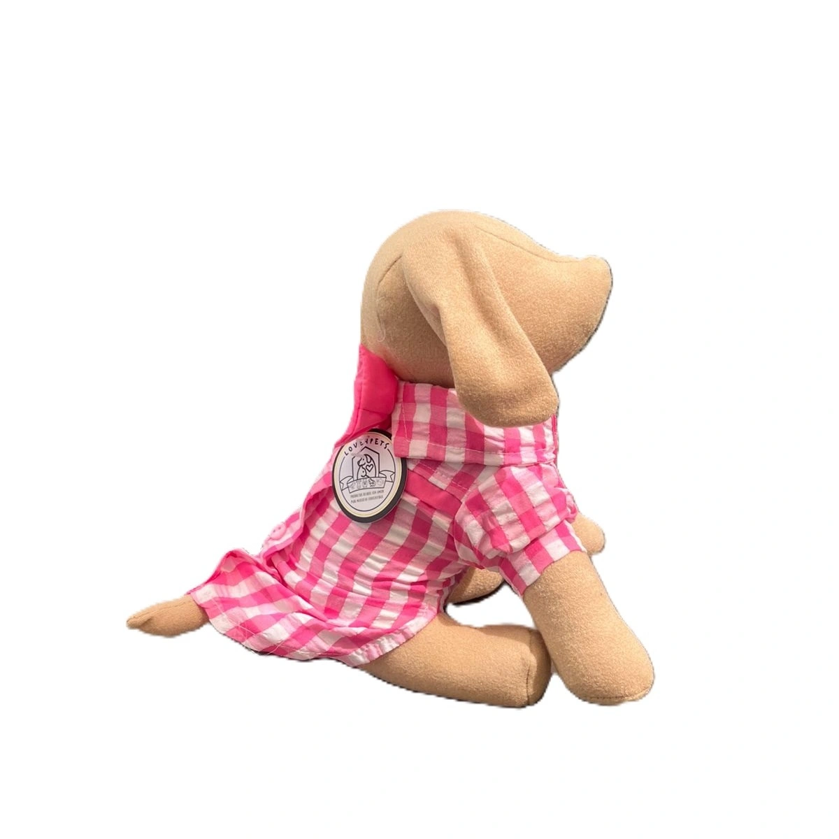 Haz que tu mascota luzca adorable y llena de estilo con esta blusa de algodón a cuadros rosa hot pink y blanco con moño rosa para mascota, una prenda perfecta que combina elegancia, comodidad y un toque femenino ideal para cualquier ocasión.