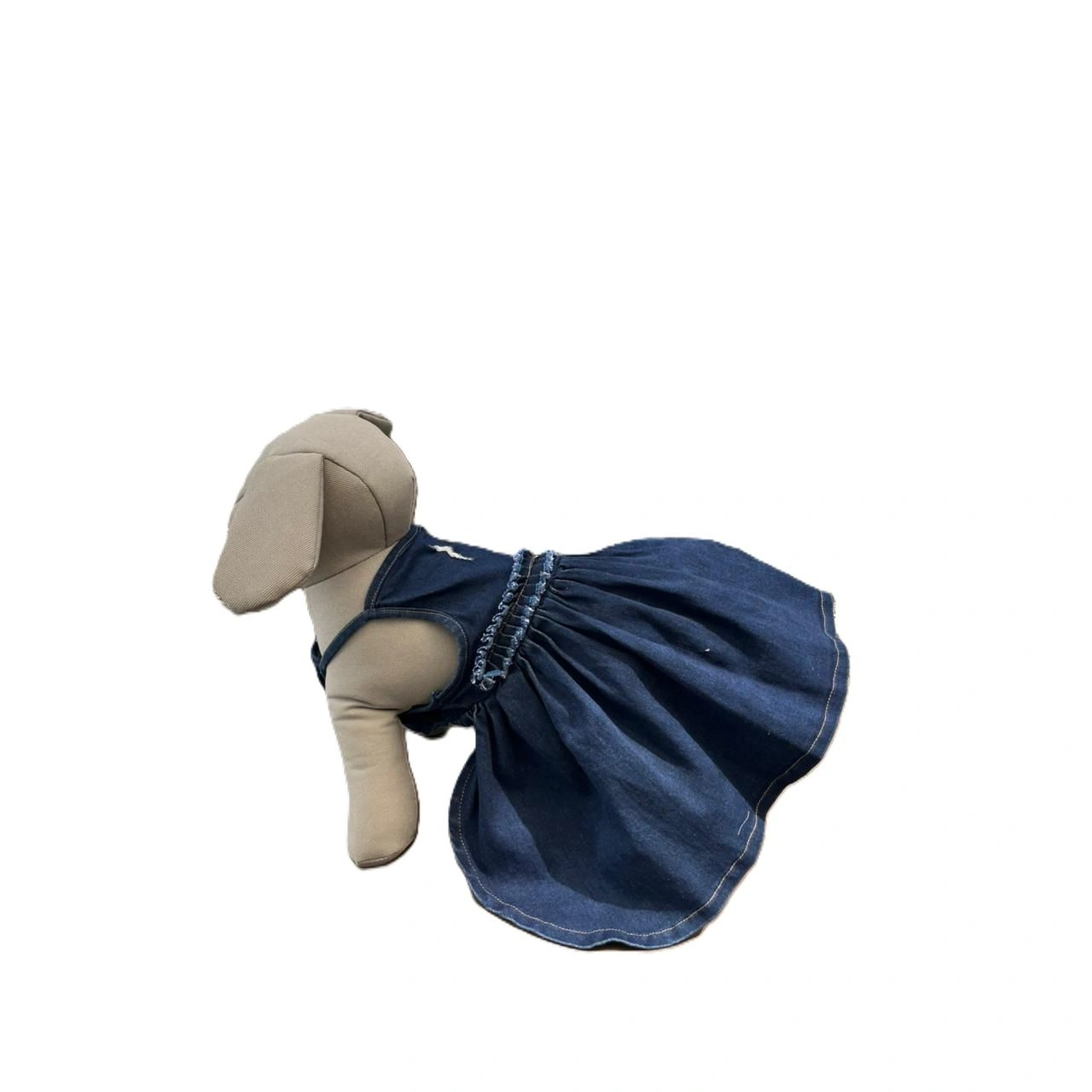 El vestido está confeccionado en mezclilla suave y resistente, un material cómodo y duradero que permite que tu mascota se mueva libremente mientras disfruta de sus actividades diarias. Su textura ligera lo hace ideal para usar en diferentes temporadas sin causar incomodidad.
