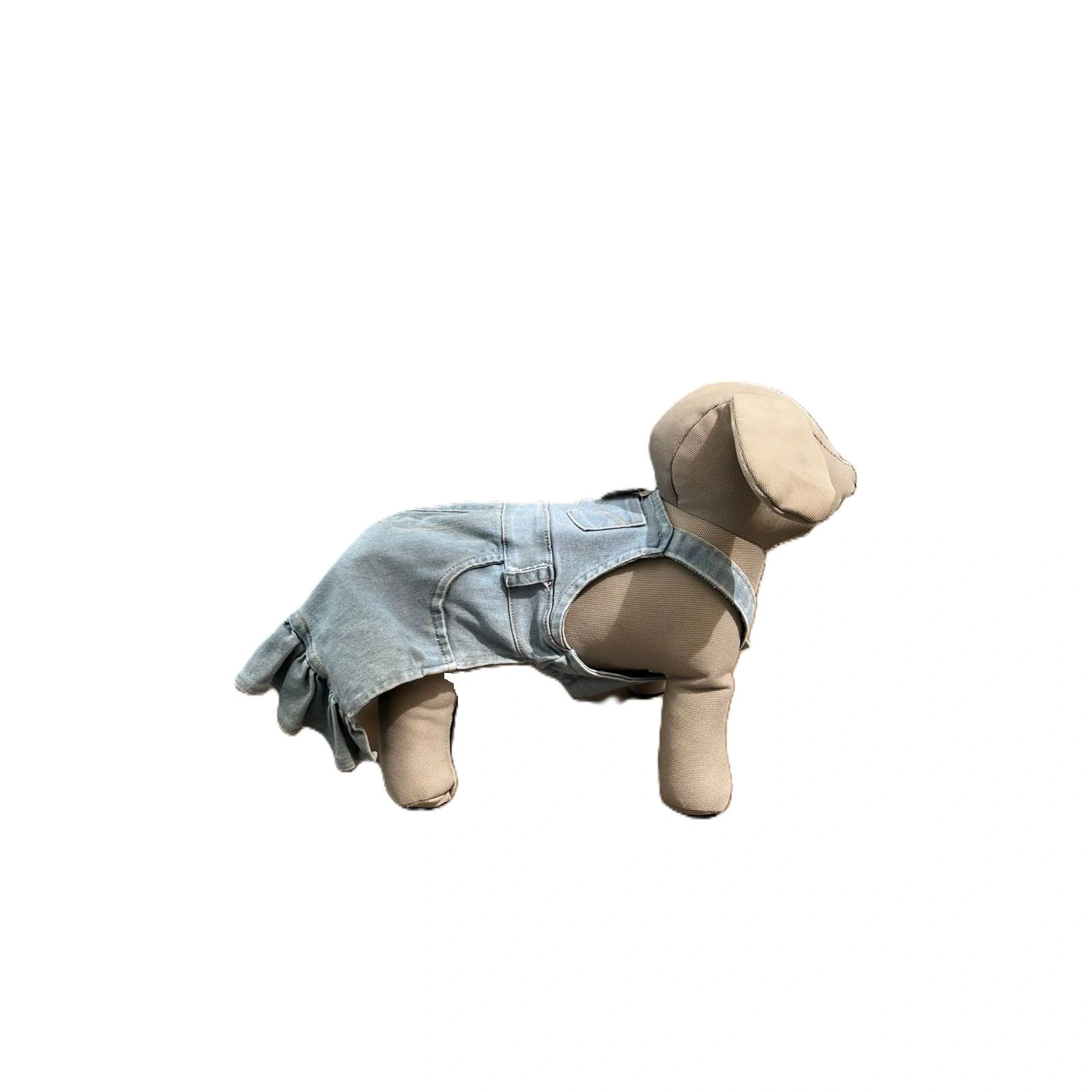 Este diseño tipo overol vestido cuenta con tirantes y parte superior ajustada, lo que brinda un ajuste cómodo y seguro al cuerpo de tu mascota. En la parte trasera incorpora bolsillos decorativos estilo jean, un detalle clásico que añade un toque auténtico y moderno al diseño.